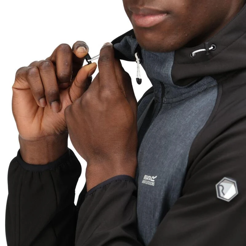 Deze Softshelljas voor heren is rekbaar en ideaal voor wandelen.